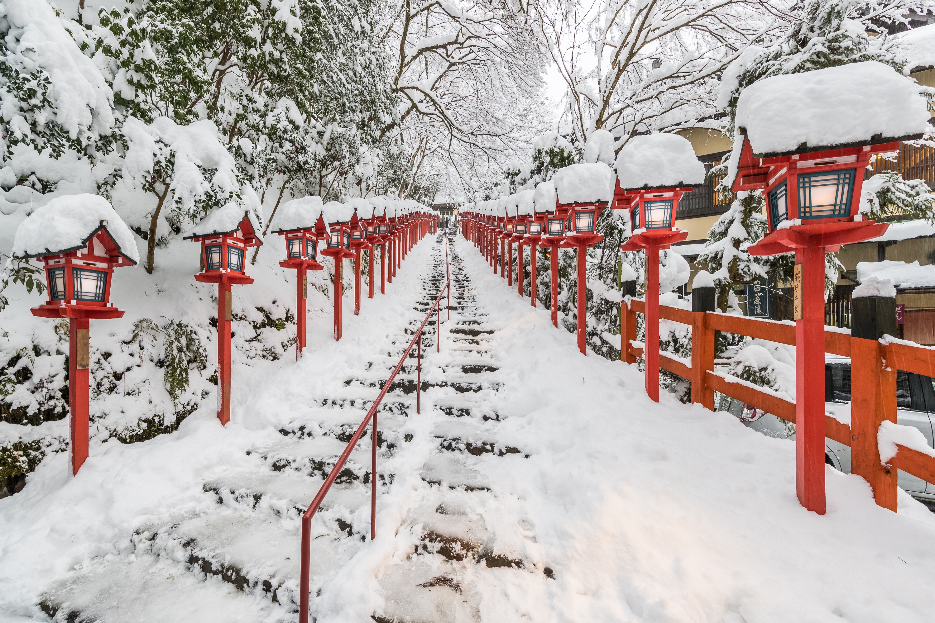 Kurama Onsen ist eine natürliche Thermalquelle in der ländlichen Gegend von Kurama, etwa 30 Minuten mit der Straßenbahn vom Zentrum Kyotos entfernt. Es ist bekannt für seine Freiluftbäder (Rotenburo), die malerische Ausblicke auf die umliegenden Berge bieten, die sich mit den Jahreszeiten wunderschön verändern – von frischem Grün im Frühling und Sommer bis zu leuchtenden Herbstblättern und verschneiten Landschaften im Winter. Obwohl es als Thermalhotel betrieben wird, kommen viele Besucher speziell für einen Tagesausflug, um die Bäder zu genießen.
