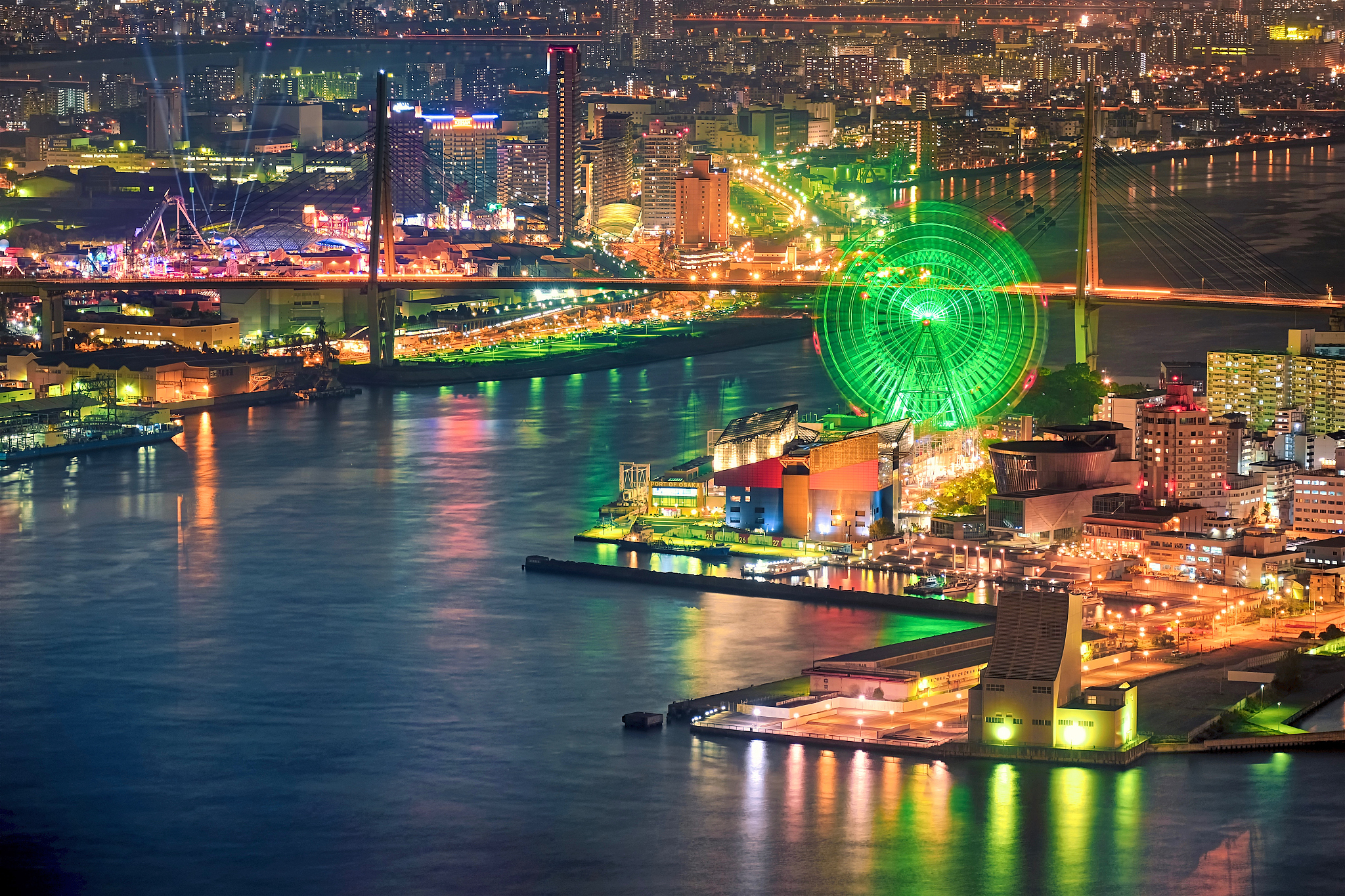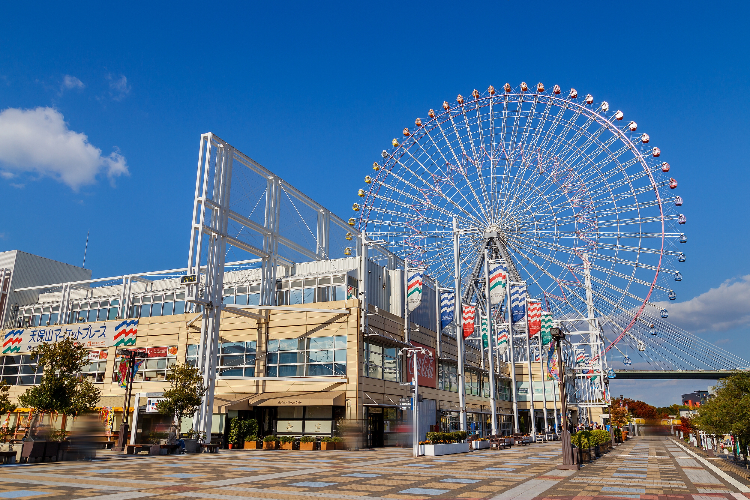 Das Tempozan-Riesenrad, einst das größte der Welt, ist ein markantes Wahrzeichen in der Osaka Bay Area, direkt neben dem Kaiyukan-Aquarium und dem Tempozan Marketplace. Es bietet eine einzigartige Perspektive auf Osakas Stadt- und Küstenlandschaft und ist eine beliebte Ergänzung zu Besuchen in der Gegend.