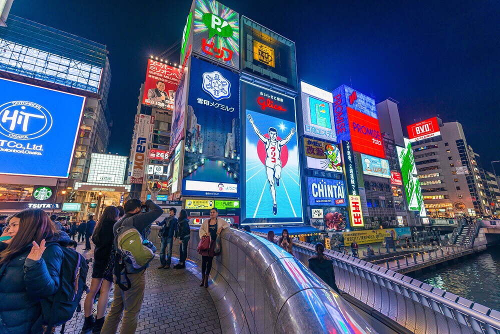 Besucher loben Dotonbori durchweg für seine elektrische Atmosphäre, besonders nachts, wenn die Neonlichter den Kanal und die Straßen erhellen. Die schiere Vielfalt an Speisen, von lokalen Spezialitäten wie Takoyaki und Okonomiyaki bis hin zu Wagyu-Spießen und Ramen, ist ein Hauptanziehungspunkt, wobei viele Rezensenten die Köstlichkeit und Fülle des Streetfoods hervorheben. Das ikonische Glico Running Man-Schild und die skurrilen Restaurantfassaden (wie riesige Krabben und Kraken) werden häufig als beliebte Fotomotive genannt. Viele empfinden das „Chaos“ und die „Lebendigkeit“ des Viertels als einen einzigartigen und aufregenden Aspekt und vergleichen es positiv mit Orten wie dem Times Square, jedoch mit einem ausgeprägten japanischen Flair.