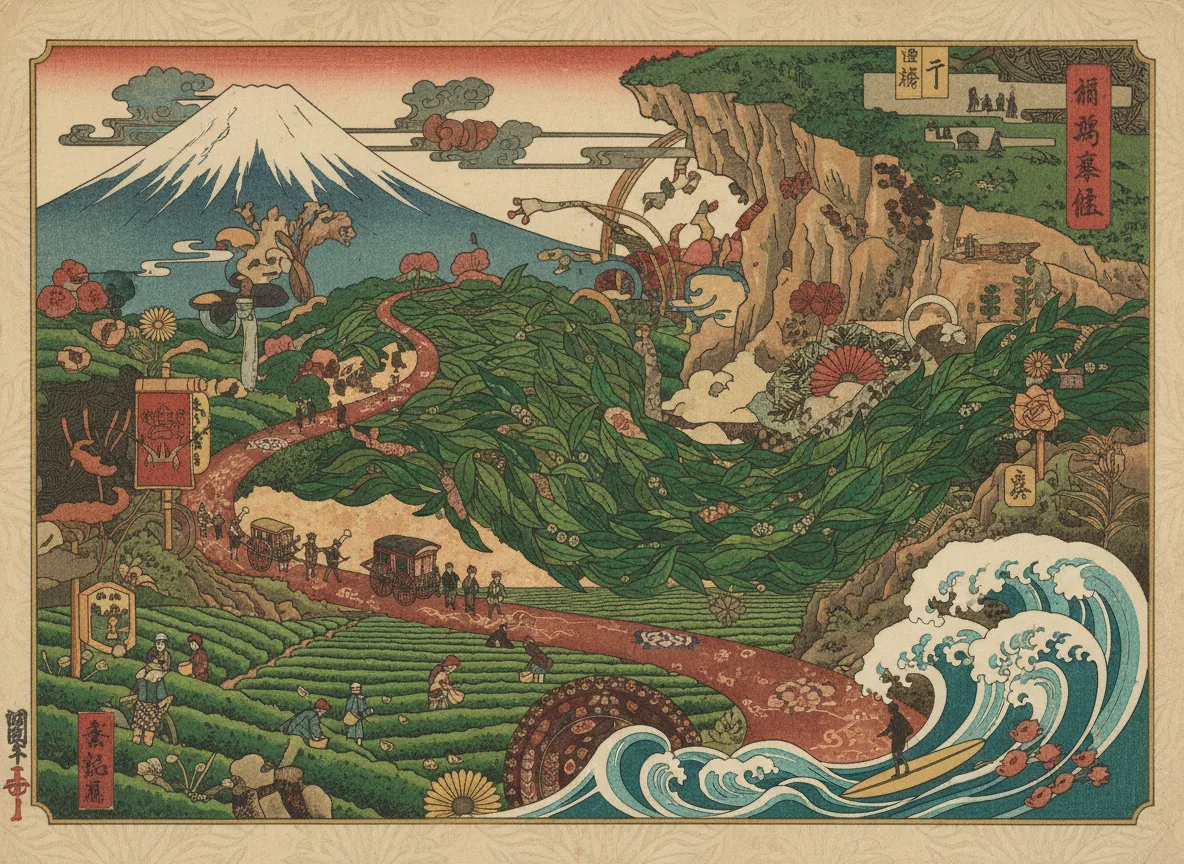 Blick auf Fuji, Teeplantagen und die historische Tokaido-Route. Surfen in Shimoda, wandern am Nihondaira-Plateau.